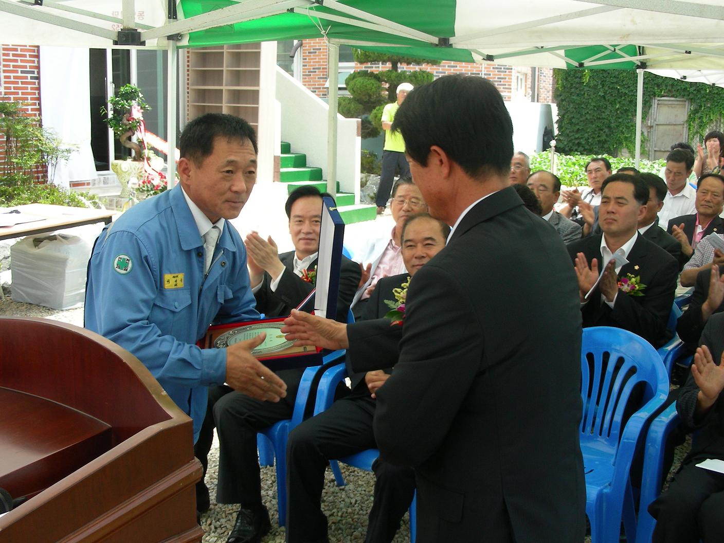 당일 준공식에는 지역국회의원을 비롯한 도의원,시의원, 청하면장 등 많은 내빈이 참석, 준공을 축하해주셨습니다. 당사는 마을회관 신축에 기여한 공로로 자매마을로부터 감사패를 받았습니다.