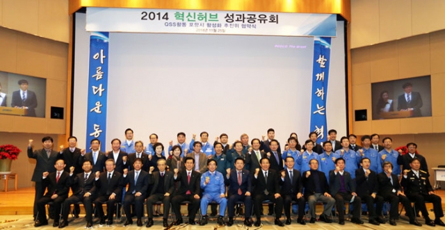 포스코 포항제철소(소장 이정식)가 25일 혁신허브의 활동성과를 공유하고 QSS활동 포항시 활성화 추진위원회의 출범을 알리는 혁신허브 성과공유 및 QSS활동 활성화 추진위 협약식을 열었다.