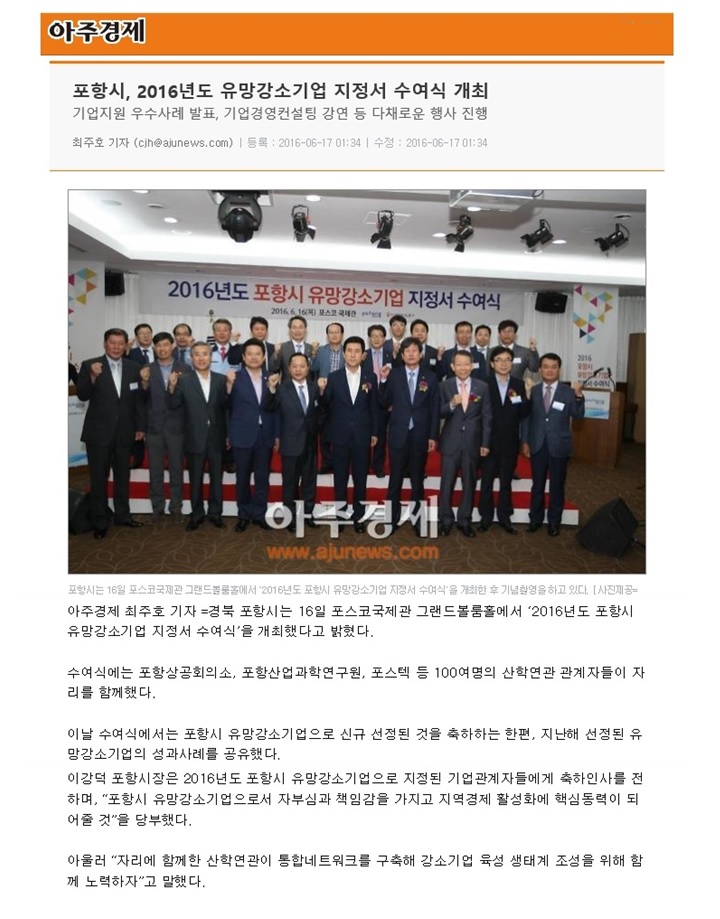 3. 내용 : 2016년 유망강소기업 지정서 수여식