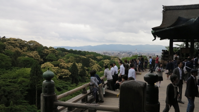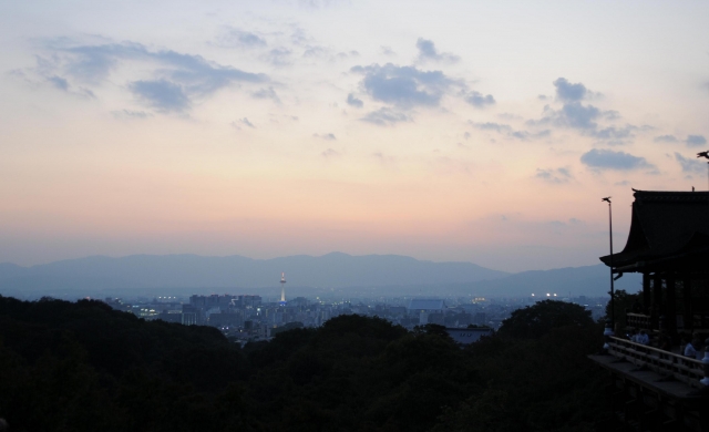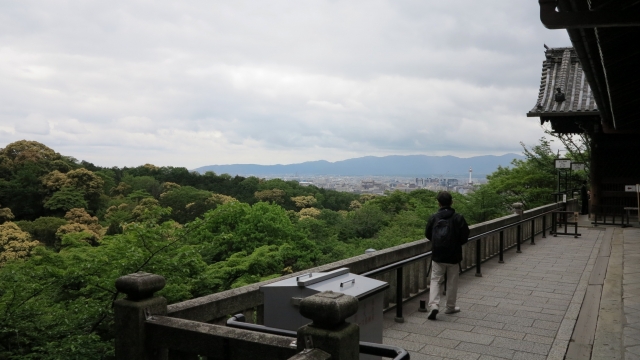 높은 툇마루에서 교토의 절반을 내려다보고 있습니다.
