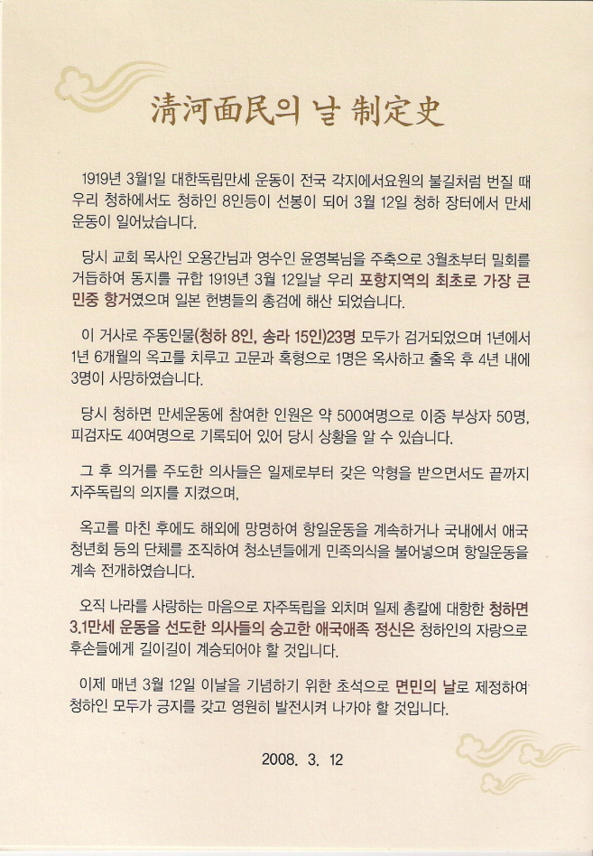 폐사가 위치한 청하면에서 아래와 같이 "제5회 청하면민의 날" 행사가 진행됩니다.
