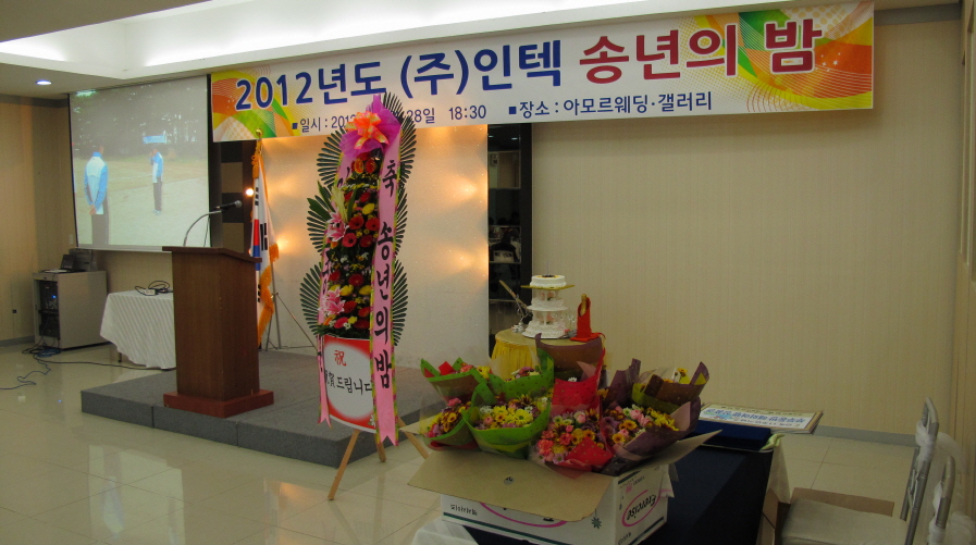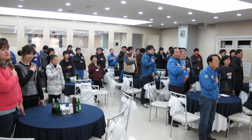 이날, 60여명의 직원 및 가족이 참석한 종무식에서 10년 이상 장기근속으로 이세욱 전무, 문병률 상무, 송미희 과장, 김정훈 과장이 표창과 함께 부상으로 '부부동반 해외여행 상품권'을 수여받았습니다. 우수사원부문의 최우수상은 품질관리팀의 정홍탁 차장이 품질개선 및 환경개선에 기여한 공로로 표창을 받았습니다. 우수상은 권기성소장, 박성남과장, 김동식과장, 최문현대리, 이승호 사원이 수상하였습니다. 한편, 종무식에서 김인술 사장님께서는 신사업의 개발 및 성장을 위하여 다함께 힘찬 출발을 다짐하고 건강과 안전을 기원하였습니다.