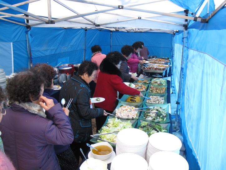 당사는 이날 행사를 위하여 맛있는 점심식사와 기념품(어르신들을 위한 내의, 기념타올)을 준비하였습니다.