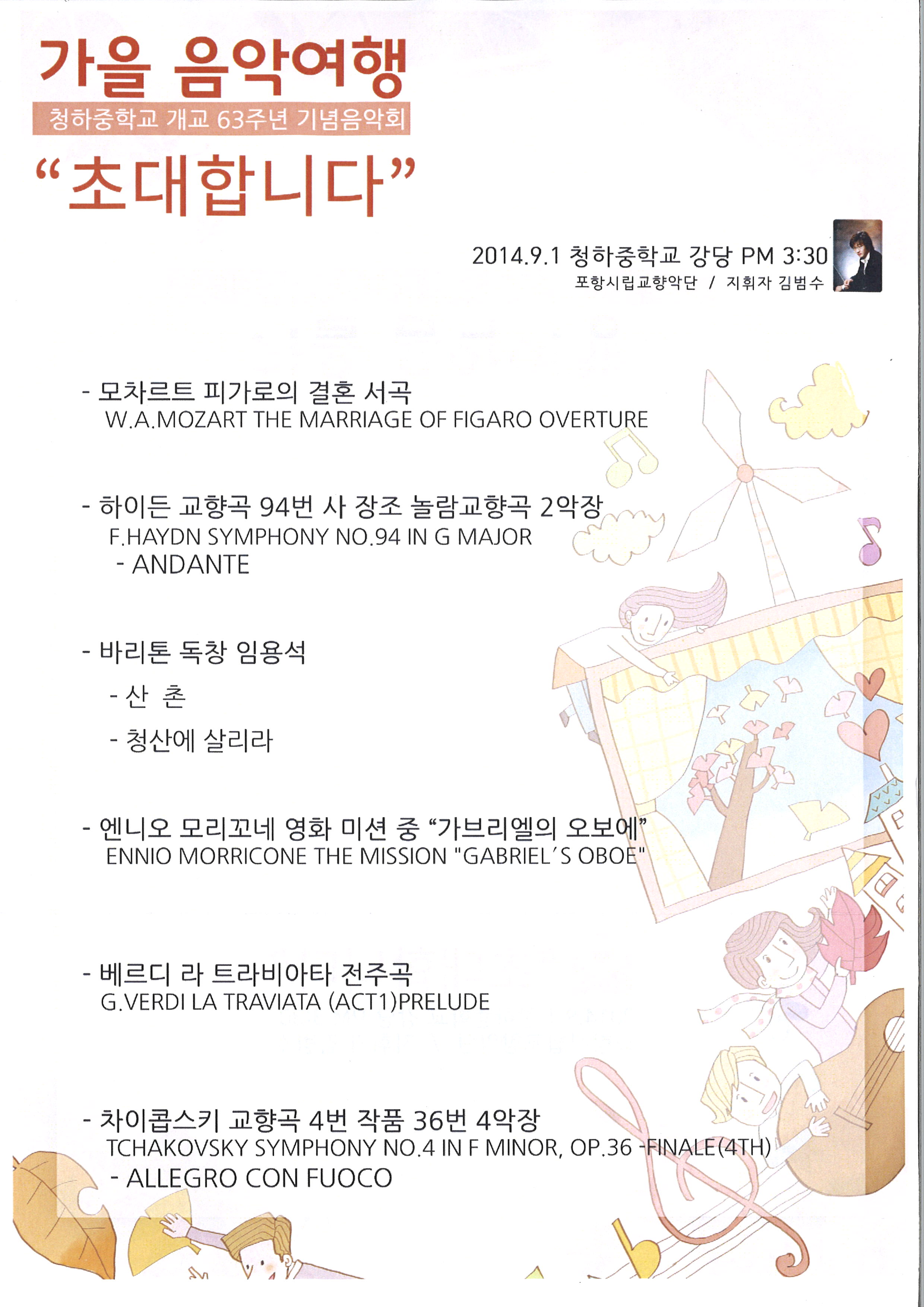 당사의 자매학교인 청하중학교(포항시 청하면 소재)의 개교 63주년을 맞이하여 다음과 같이 기념음악회가 열립니다.