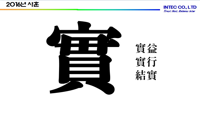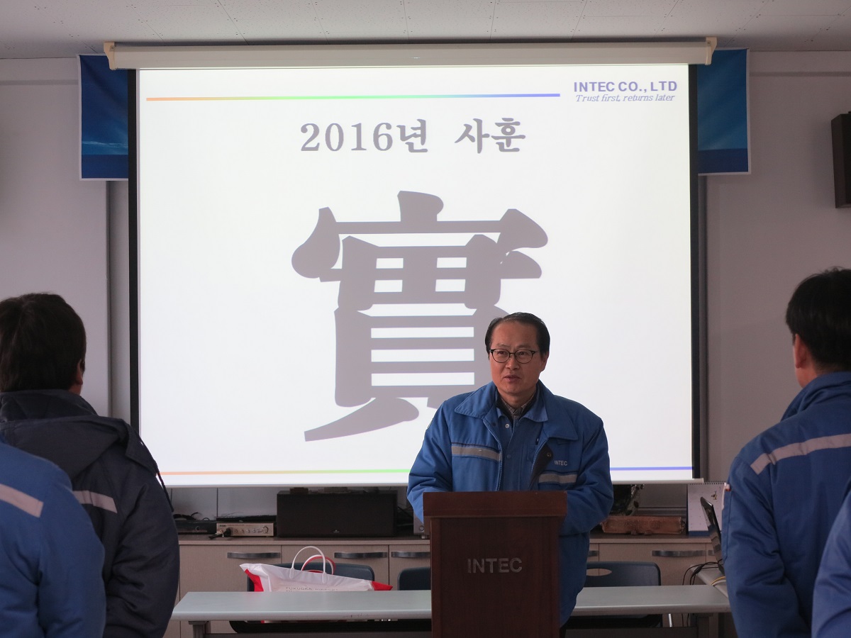 2016년 새해를 맞이하여 實 (實益 實行 結實)의 사훈으로 본사 발전을위하여 일치단결하여 마음을 새로이 가졌습니다.