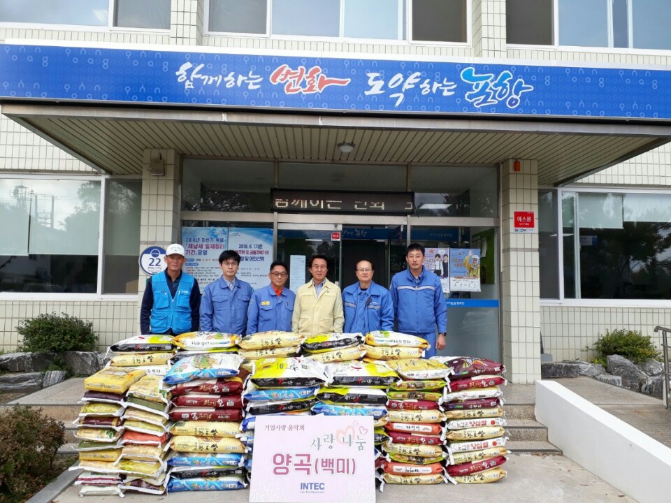 2018년 (주)인텍 기업사랑음악회에서 화환대신 백미로 기증받아 청하면 어려운 이웃에게 백미 2,000kg을 기증하였습니다.