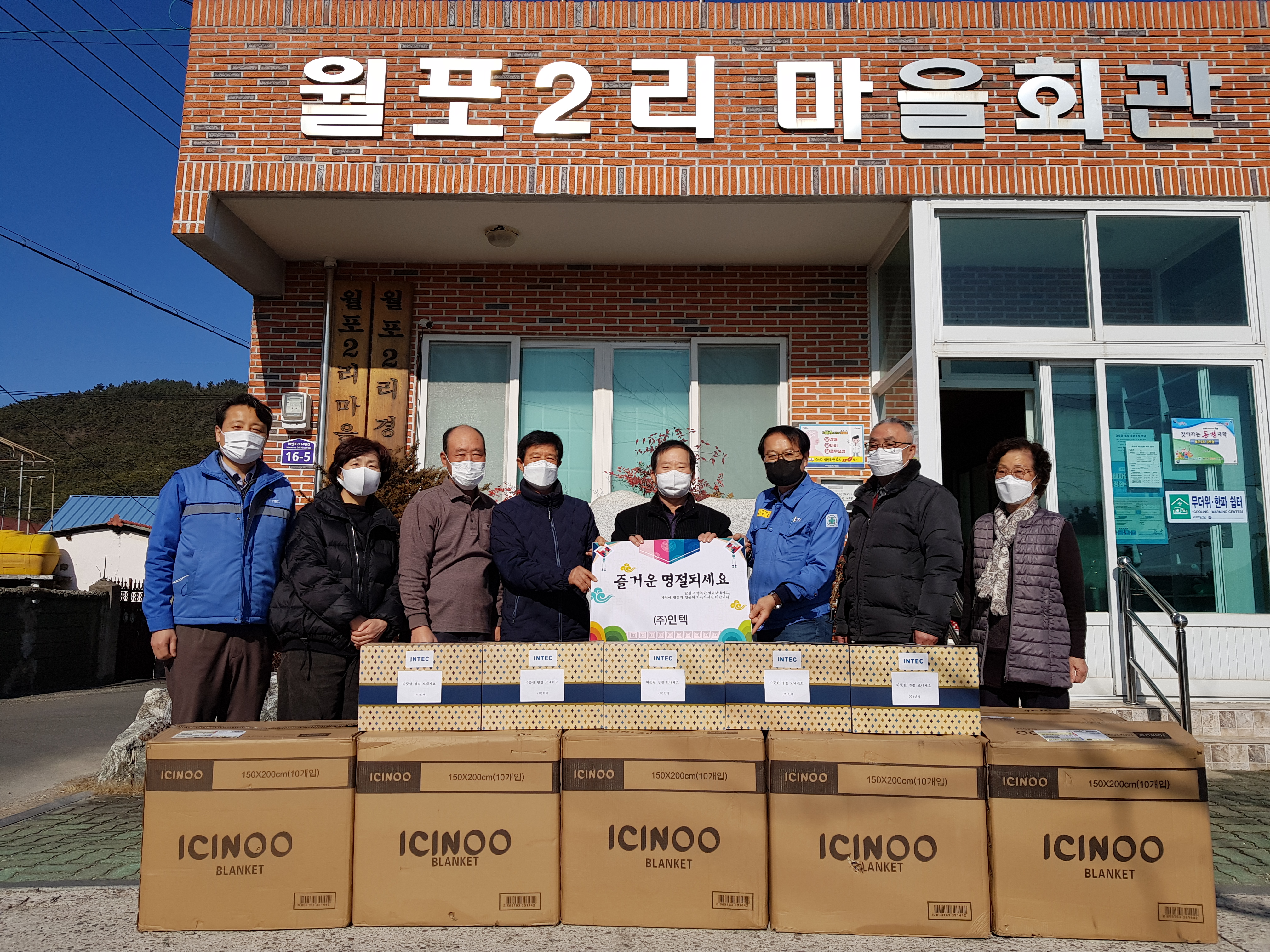 월포2리 마을회관에서 명절을 맞이하여 어르신들에게 따뜻한 담요 75세트을 전달하였습니다.