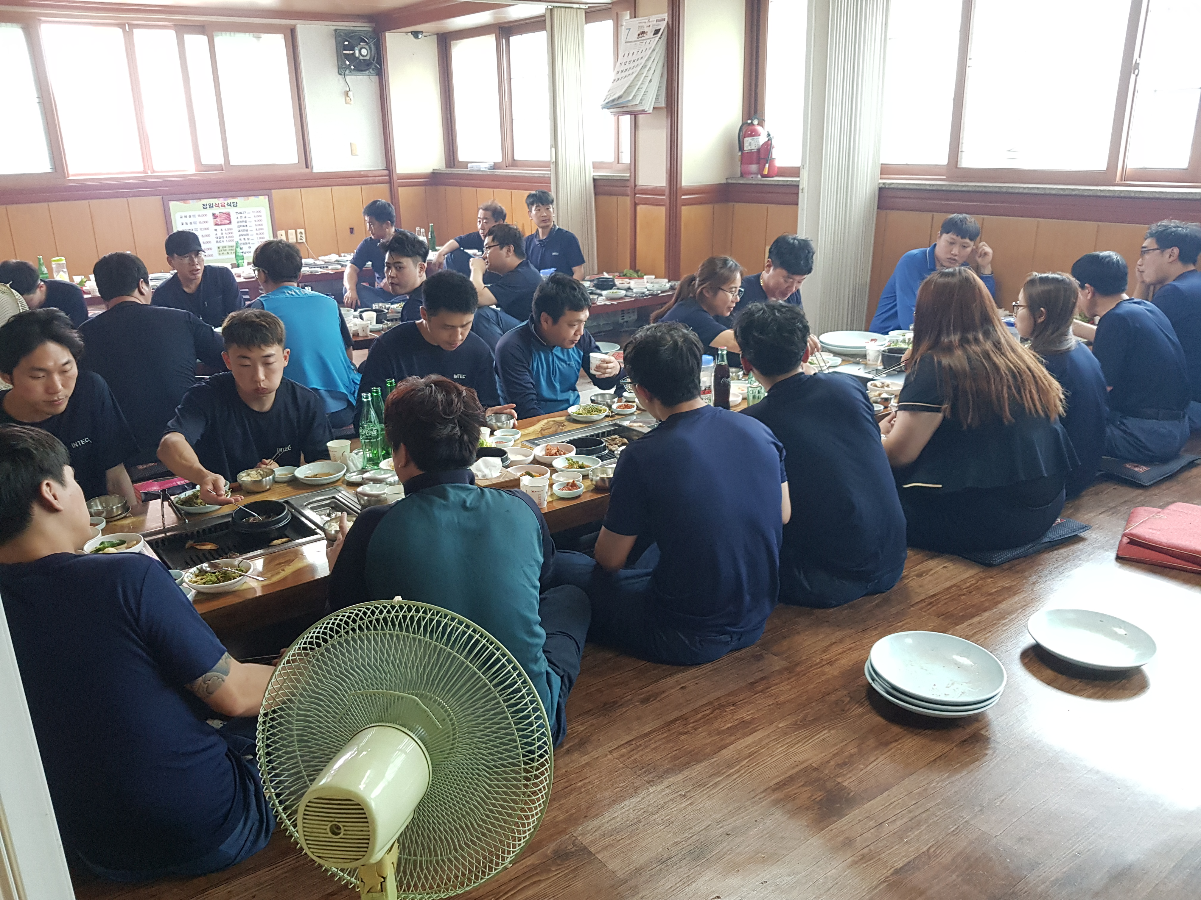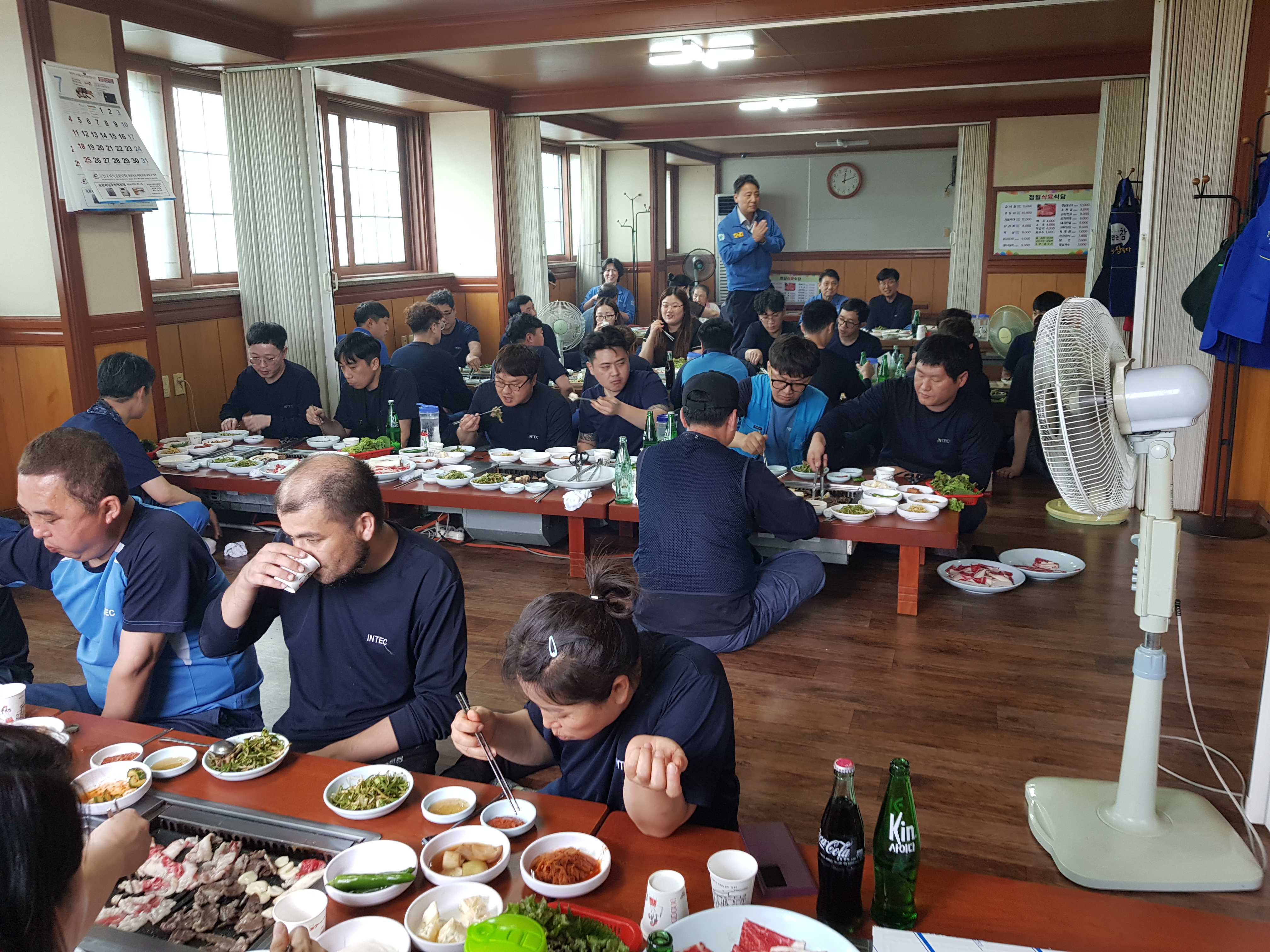 코로나19로 지친 직원을 위한 소고기 구이로 멋진 점심식사였습니다.