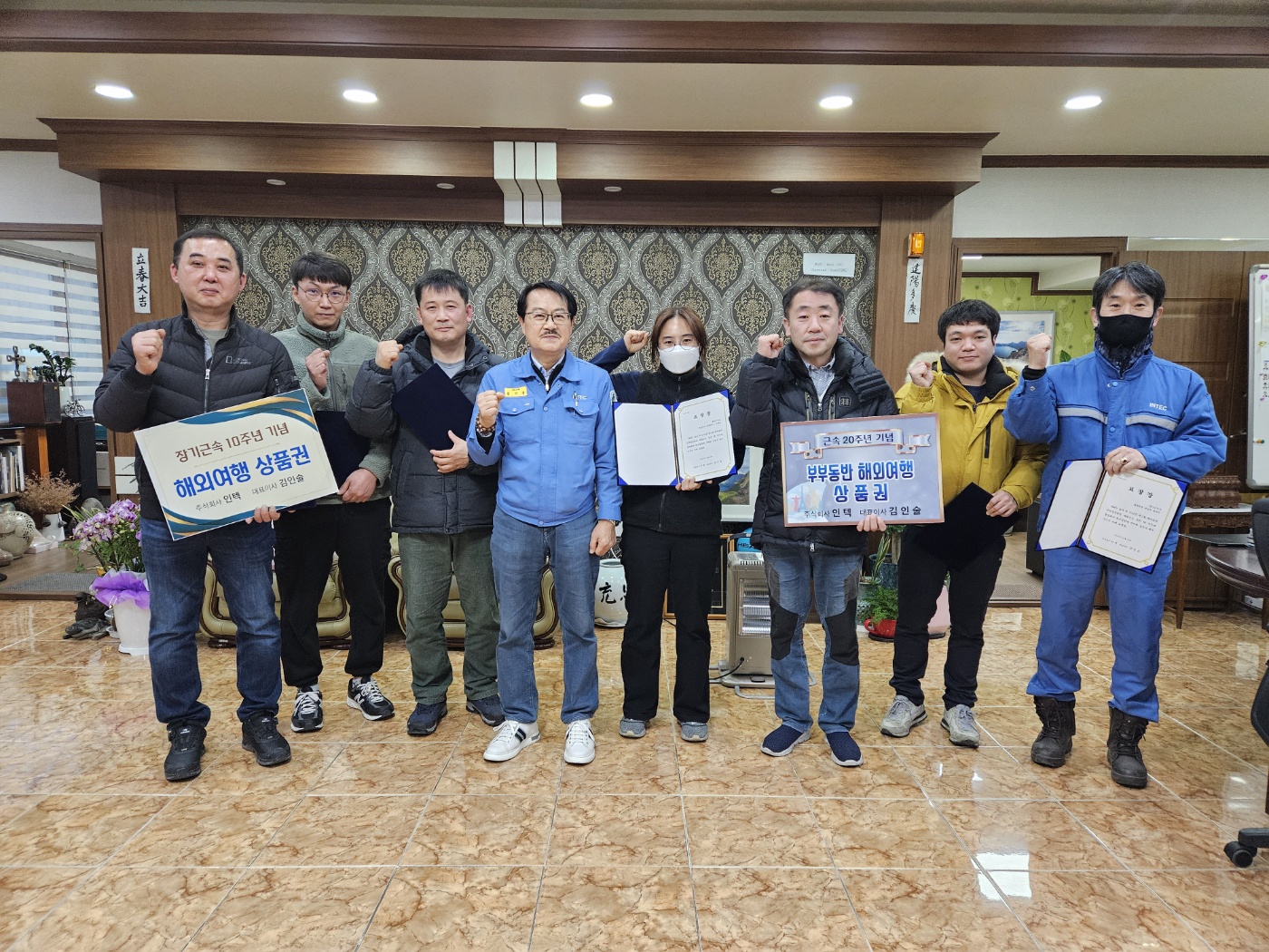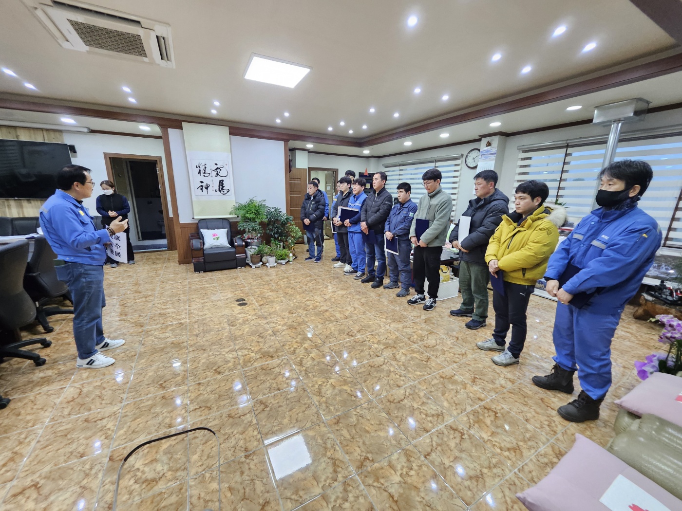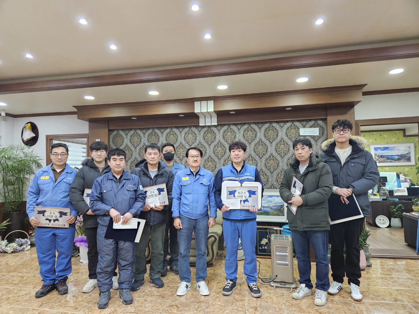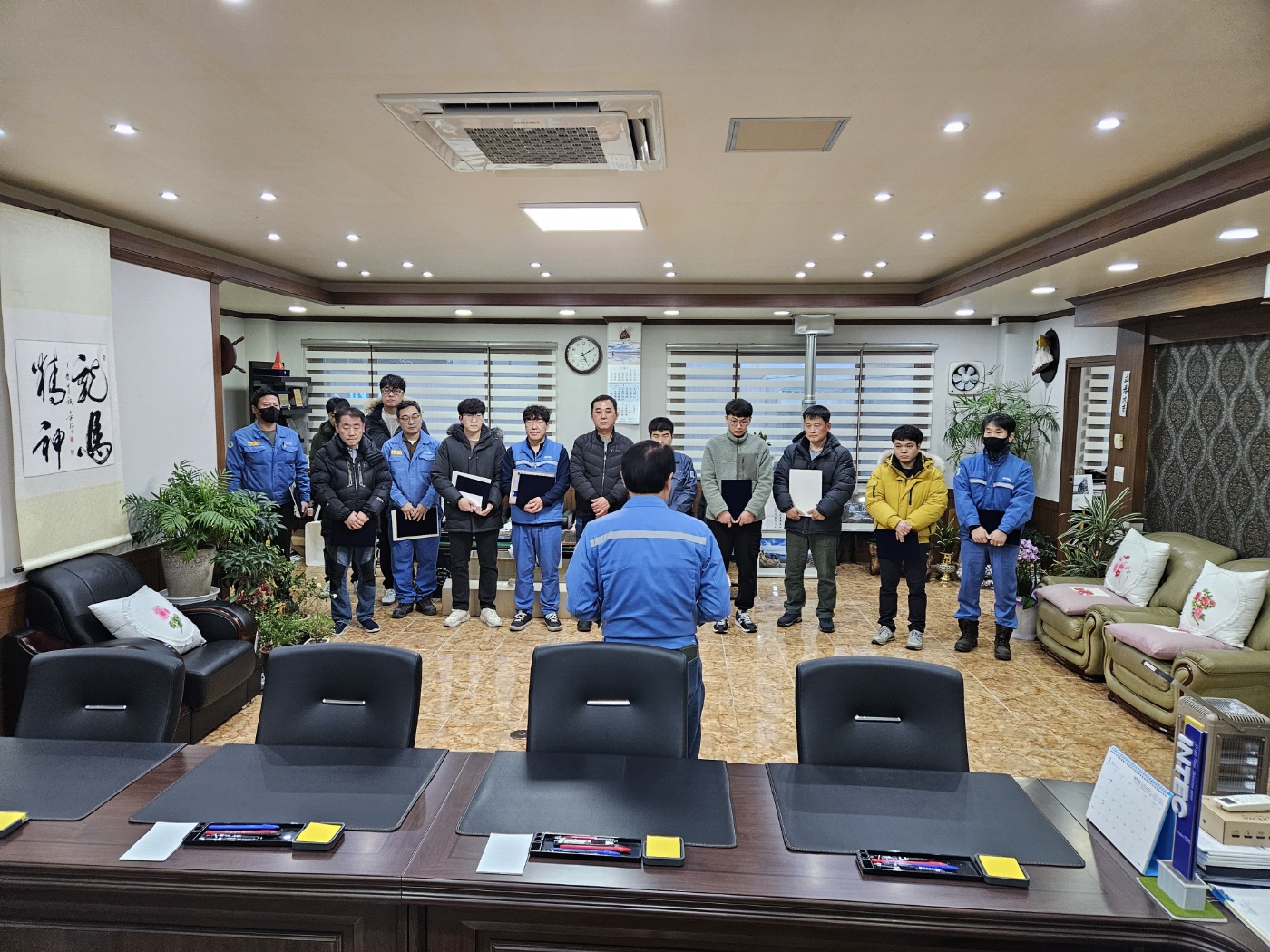 전임직원 모임은 생략하고 우수사원과 장기근속자, 공장별 팀장 간담회를 가졌습니다.