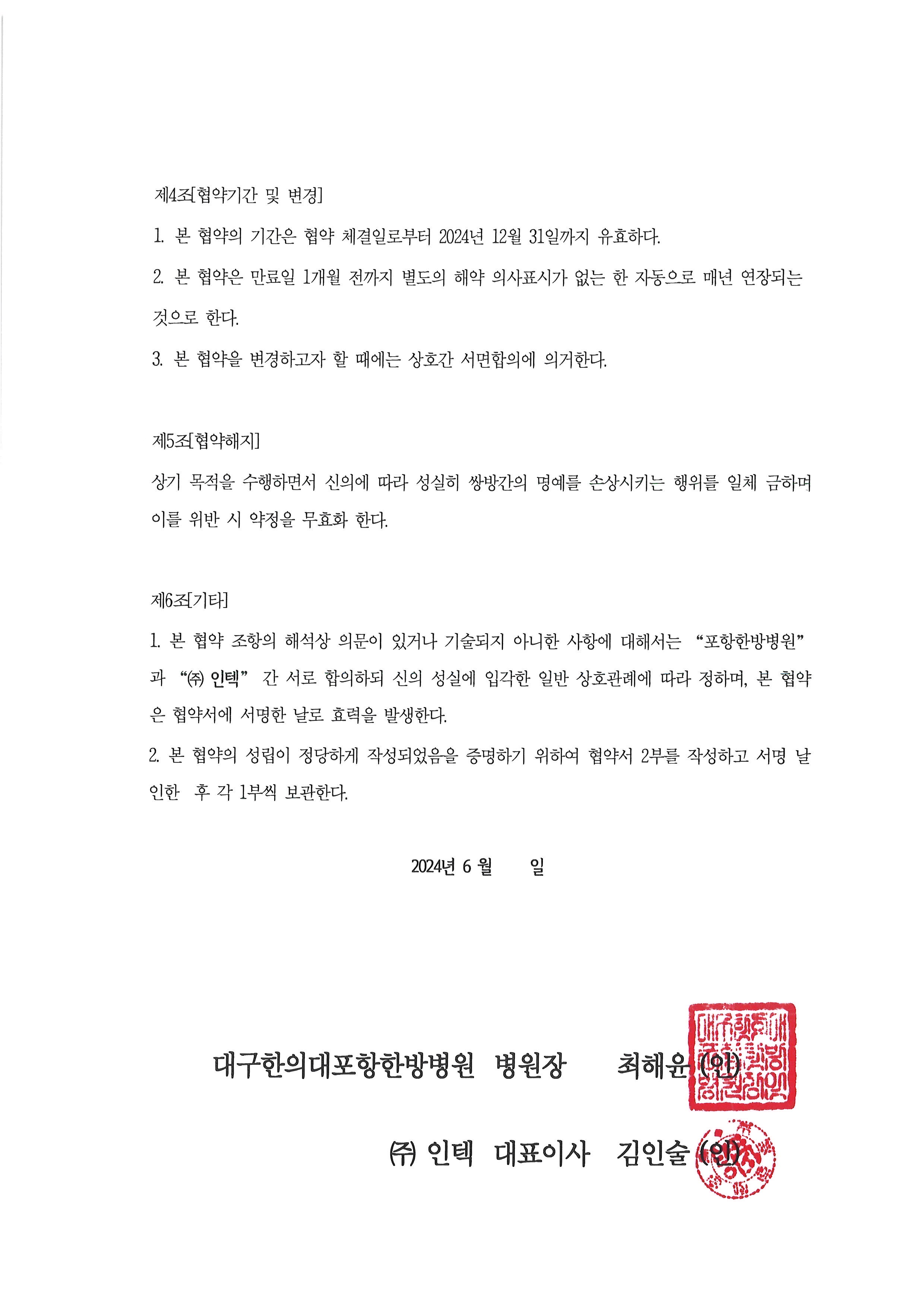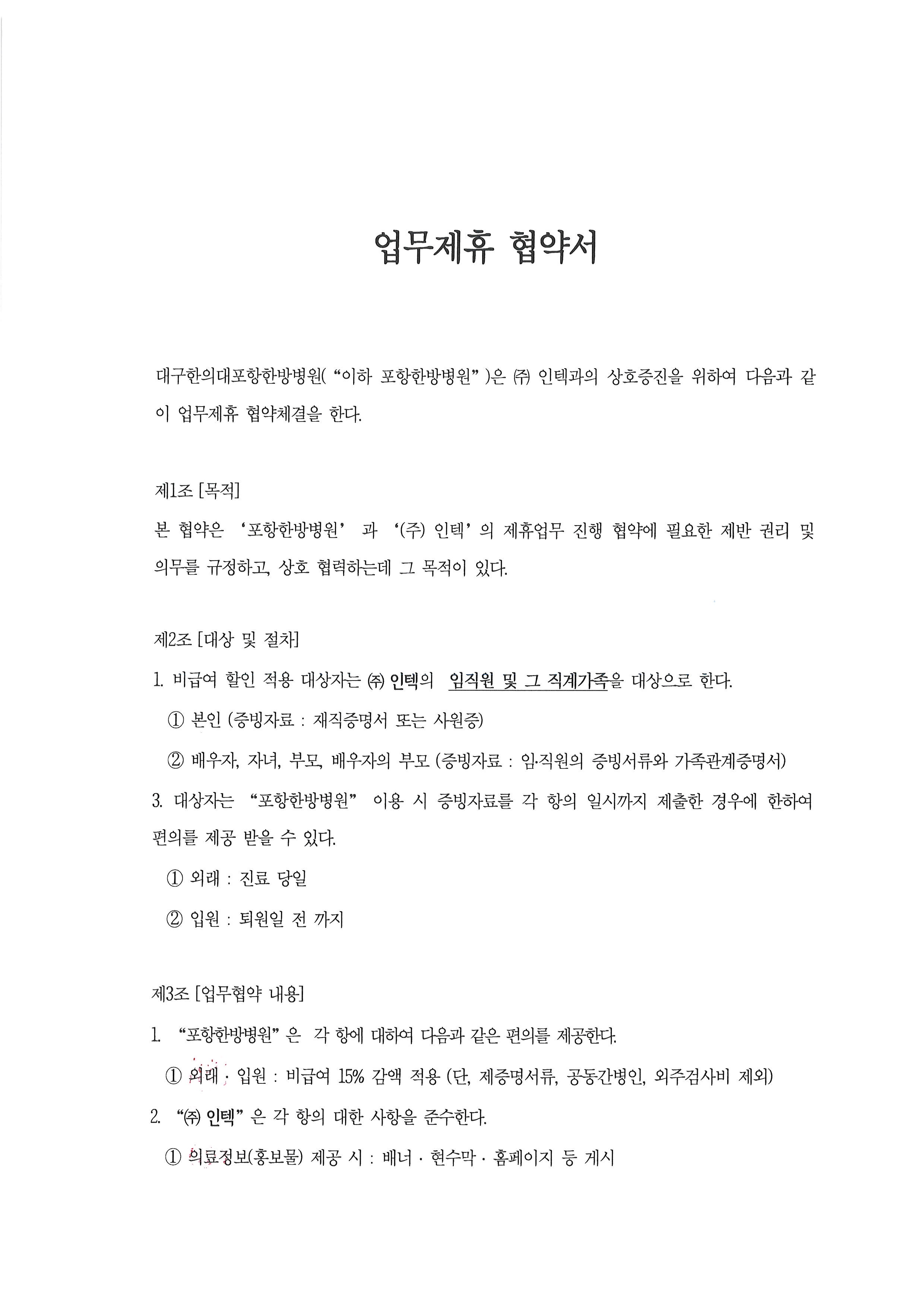 대구한의대포항한방병원과 (주)인텍의 상호증진을 위하여 업무제휴 협약체결 하였습니다.