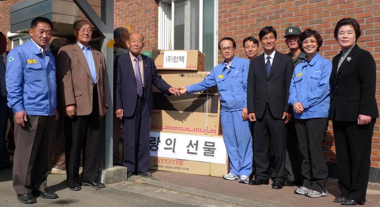 當社는 淸河面 所在 敬老會館에 사랑의 膳物을 寄贈하였습니다.